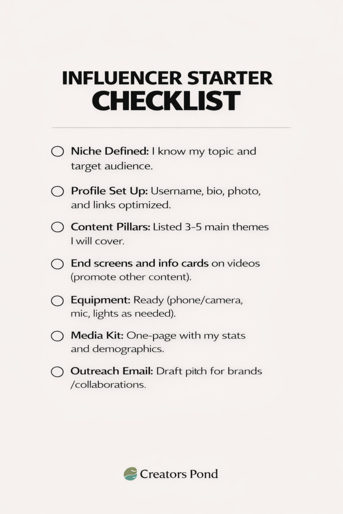 Influencer Starter Checklist (copyable):